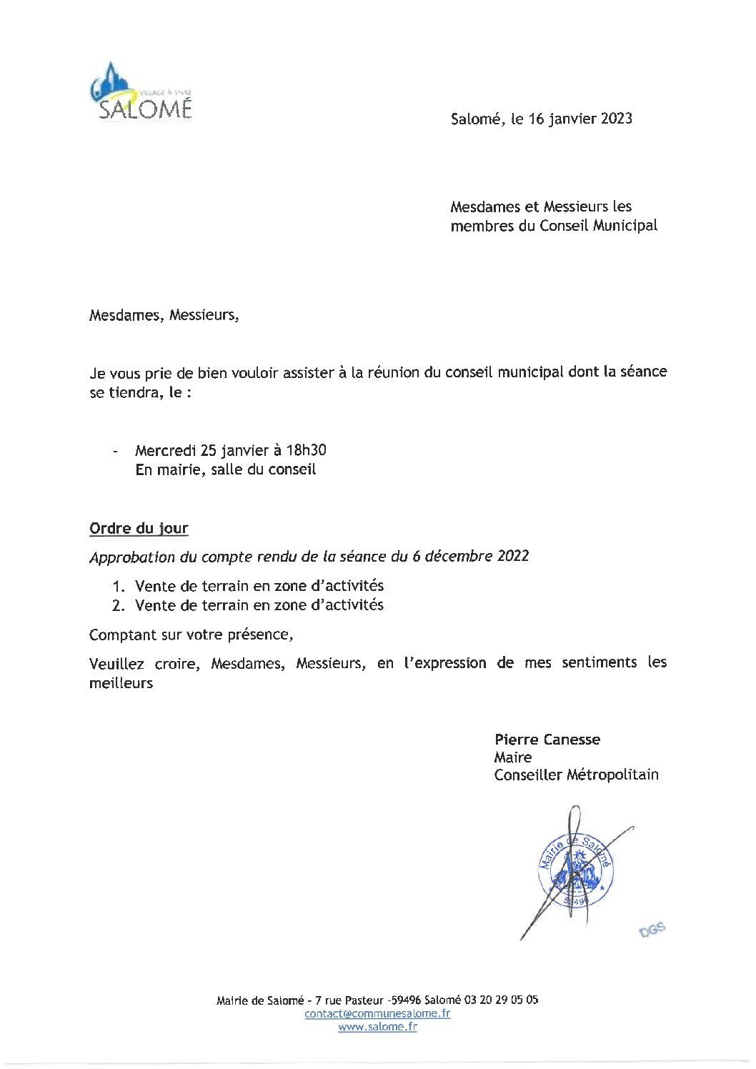 Ordre du jour des conseils municipauxMairie de Salomé2024-03-29T08:02:33+01:00 Ordres du jour des conseils municipaux Prochain CM20232022202120202019201820172016Prochain CM Conseil municipal du 27 Janvier 2024 2023 Conseil municipal du 13 Décembre 2023 Conseil municipal du 18 Octobre 2023 Conseil municipal du 05 Juillet 2023 Conseil municipal du 09 Juin 2023 Conseil municipal du 05 avril 2023 Conseil municipal du 25 janvier 20232022202120202019201820172016